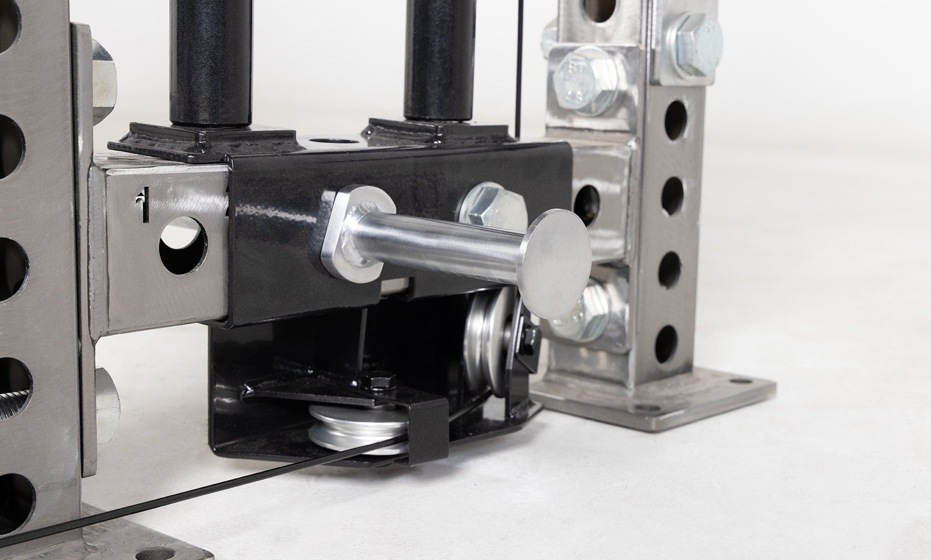 This attachment features high-quality cables made from galvanized wire with a raw steel core and strong aluminum pulleys. The front pulleys have a 180-degree swivel for versatility working outside the rack. -
